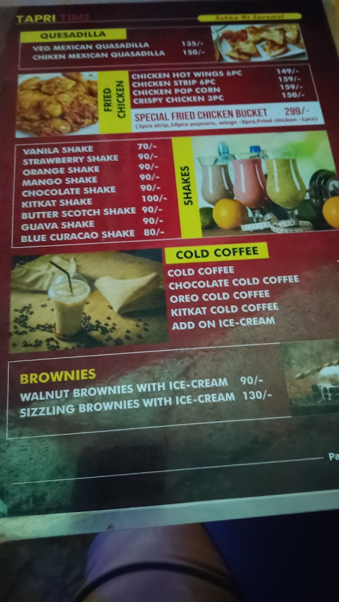 - Quesadillas: Veg Mexican Quesadilla at ₹130 and Chicken Mexican Quesadilla at ₹150.